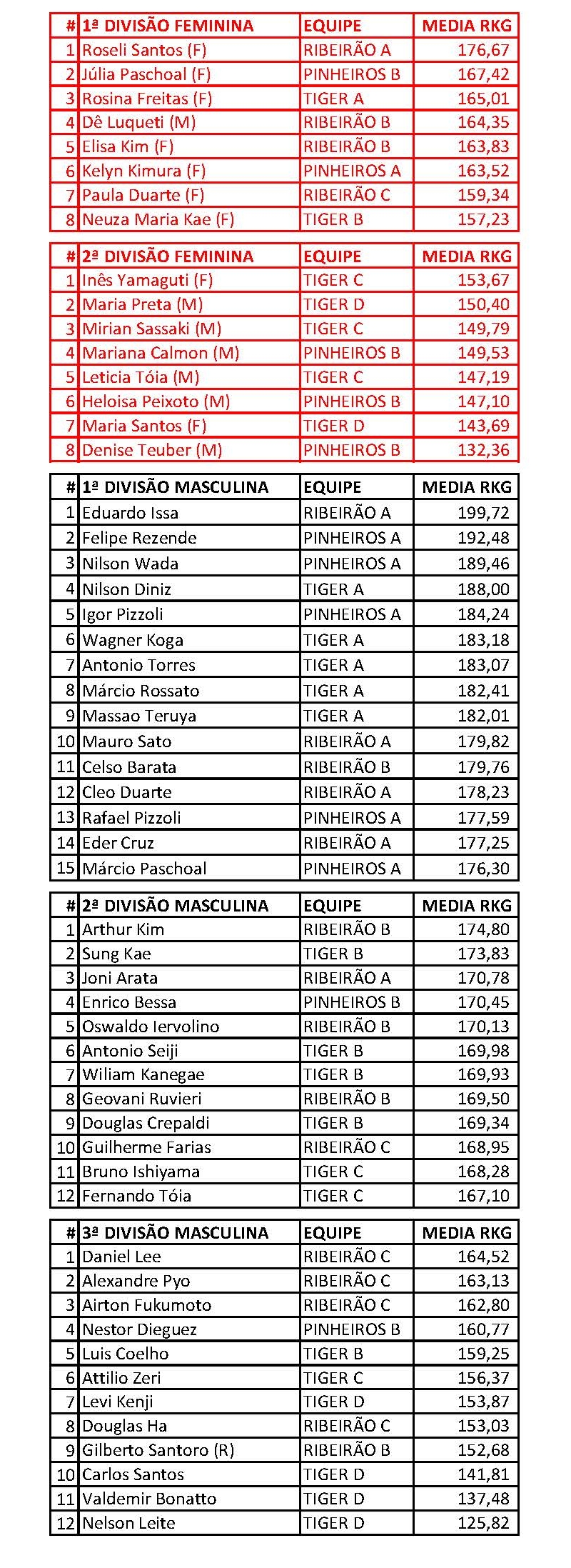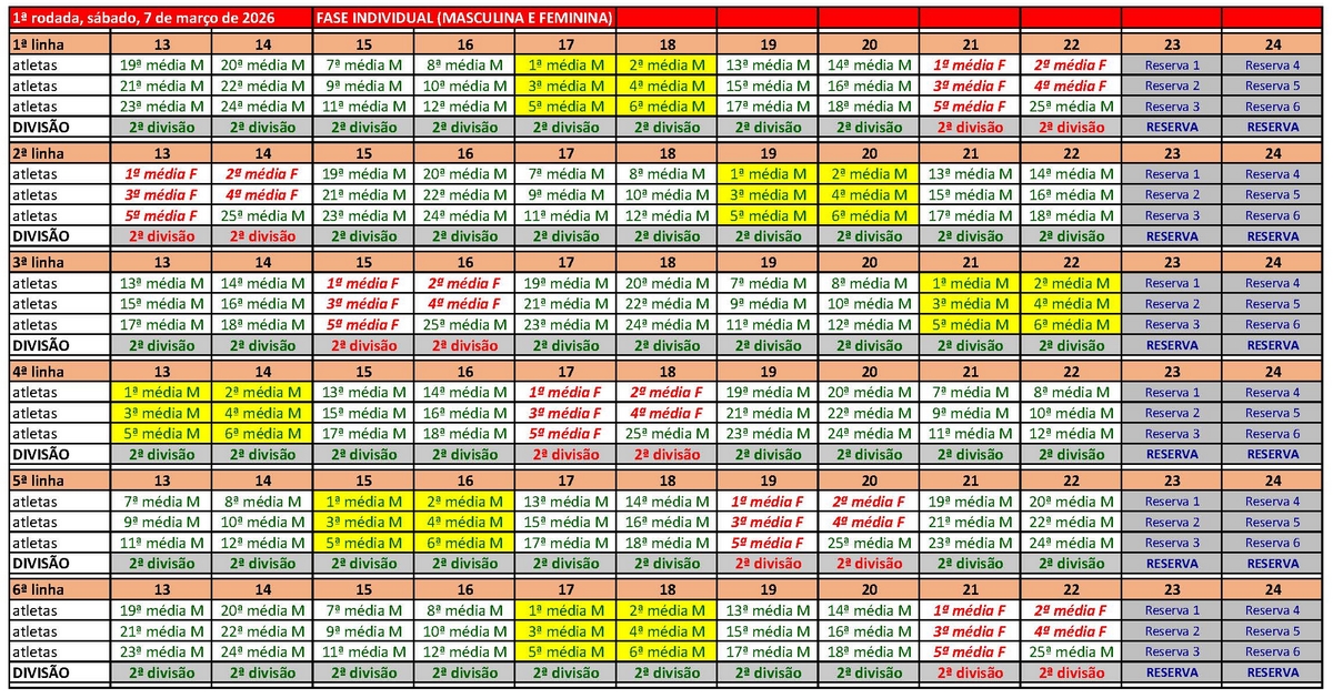 9.1 – O posicionamento dos atletas nas pistas se dará pelas médias de cada equipe, a critério dos organizadores da FPBOL.